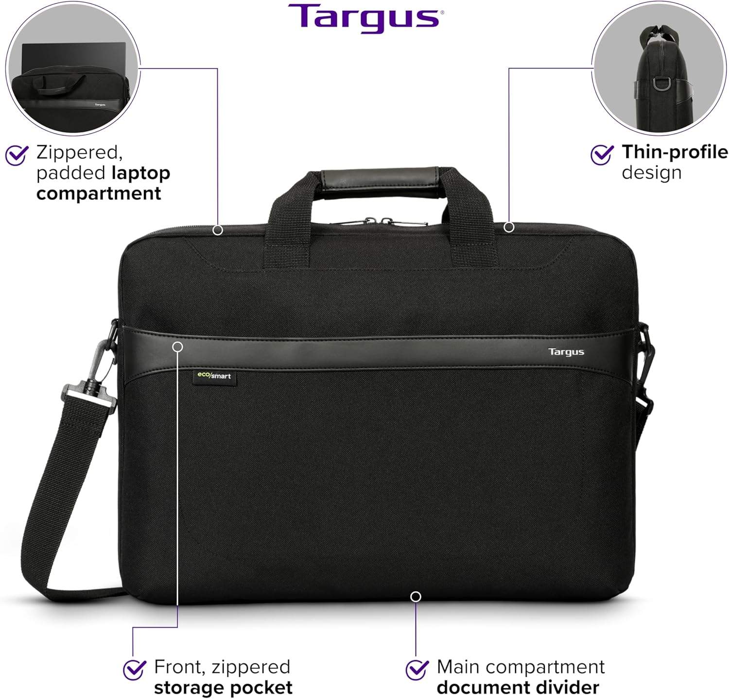 - Design respectueux de l'environnement et durable : fabriqué avec un tissu résistant à l'eau et un intérieur fabriqué à partir de matériaux recyclés, y compris deux bouteilles d'eau, cette mallette au profil mince offre durabilité et durabilité sans compromettre le style ou la fonctionnalité