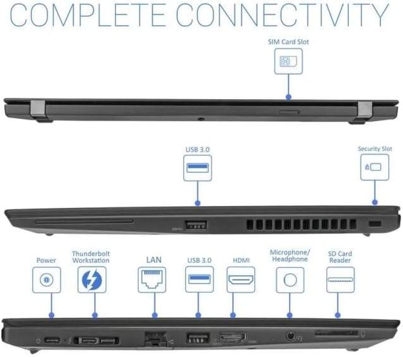 - Lenovo Ordinateur portable professionnel ThinkPad T480s, avec 16 Go de RAM, SSD de 256 Go.